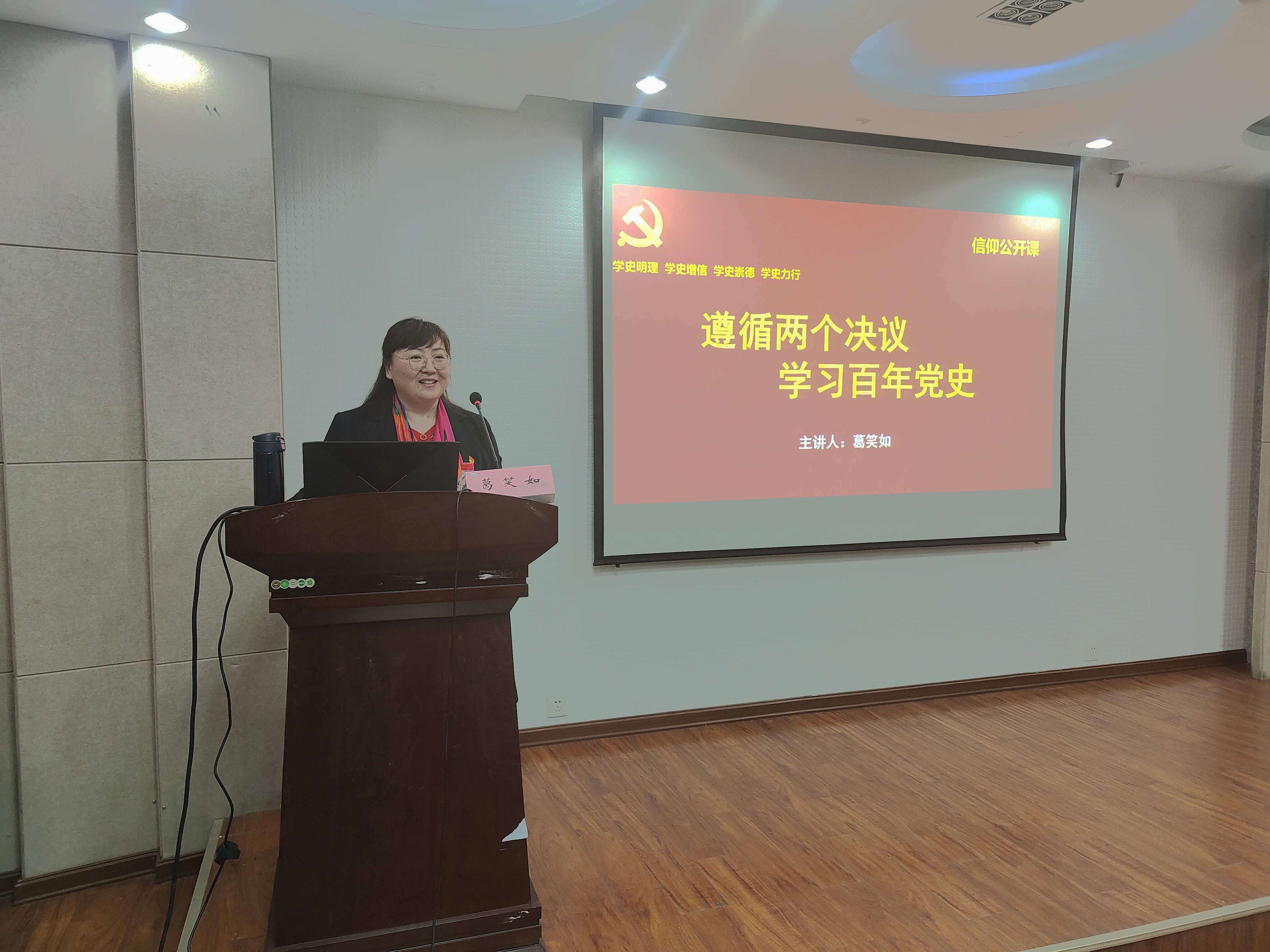 葛笑如以“遵循两个决议,学习百年党史”为题,详细讲解了习近平总书记论党史的内容,并进一步阐述了总书记提出的九条建议。随后,她从“站起来”“站稳了”“富起来”“强起来”四个方面系统地介绍了中国共产党百年奋斗的光辉历程和历史贡献,又围绕两个《历史决议》及历史上“右”和“左”的问题,分享了自己的看法,并深刻论述了反对历史虚无主义的重要意义。