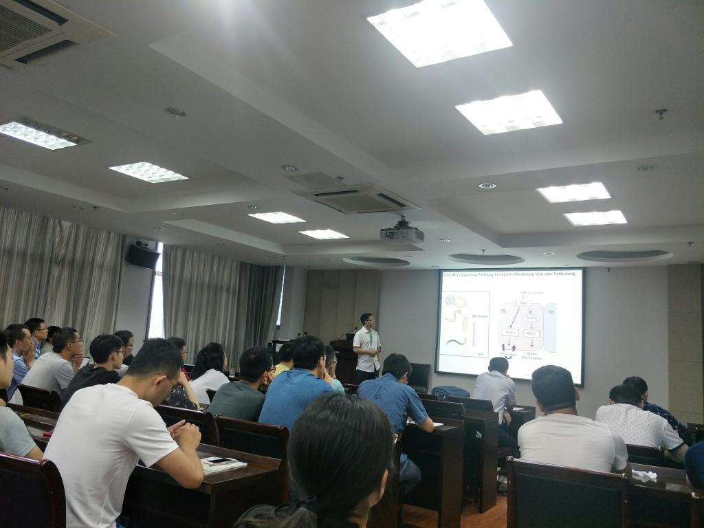 刘逊亮博士,2012年开始在亚利桑那州大学从事博士后研究,在报告中,他主要讲解了植物孢囊线虫与寄主植物相互作用的分子机制。陈亚州博士,2014年开始在英国约翰英纳斯中心从事博士后研究,主要研究昆虫与植物的相互作用,以及昆虫对寄主植物的适应性机制。在他的报告中,以蚜虫为例,分享植物与昆虫相互作用的新见解。