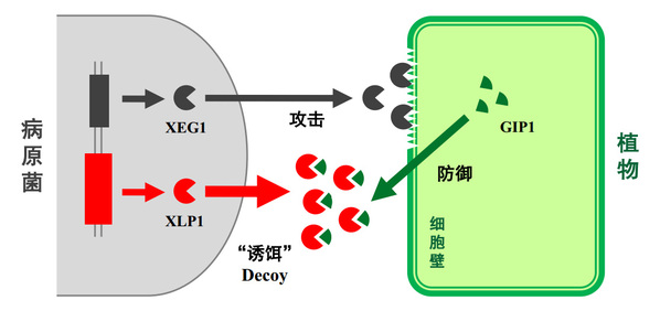 作物疫病研究团队鉴定了疫病菌攻击植物的关键武器——效应子XEG1,并发现植物在利用抑制蛋白对XEG1的防卫过程中,疫霉菌能够分泌失去酶活的XEG1突变体XLP1作为“诱饵”吸引抑制蛋白,掩护XEG1对植物的攻击。此外,还发现效应子能够进入到植物细胞内以干扰组蛋白乙酰化等方式破坏植物抗病性。