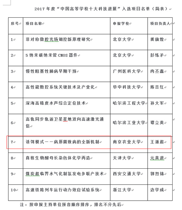 作物疫病团队研究成果《诱饵模式——病原菌致病的全新机制》成功入选。