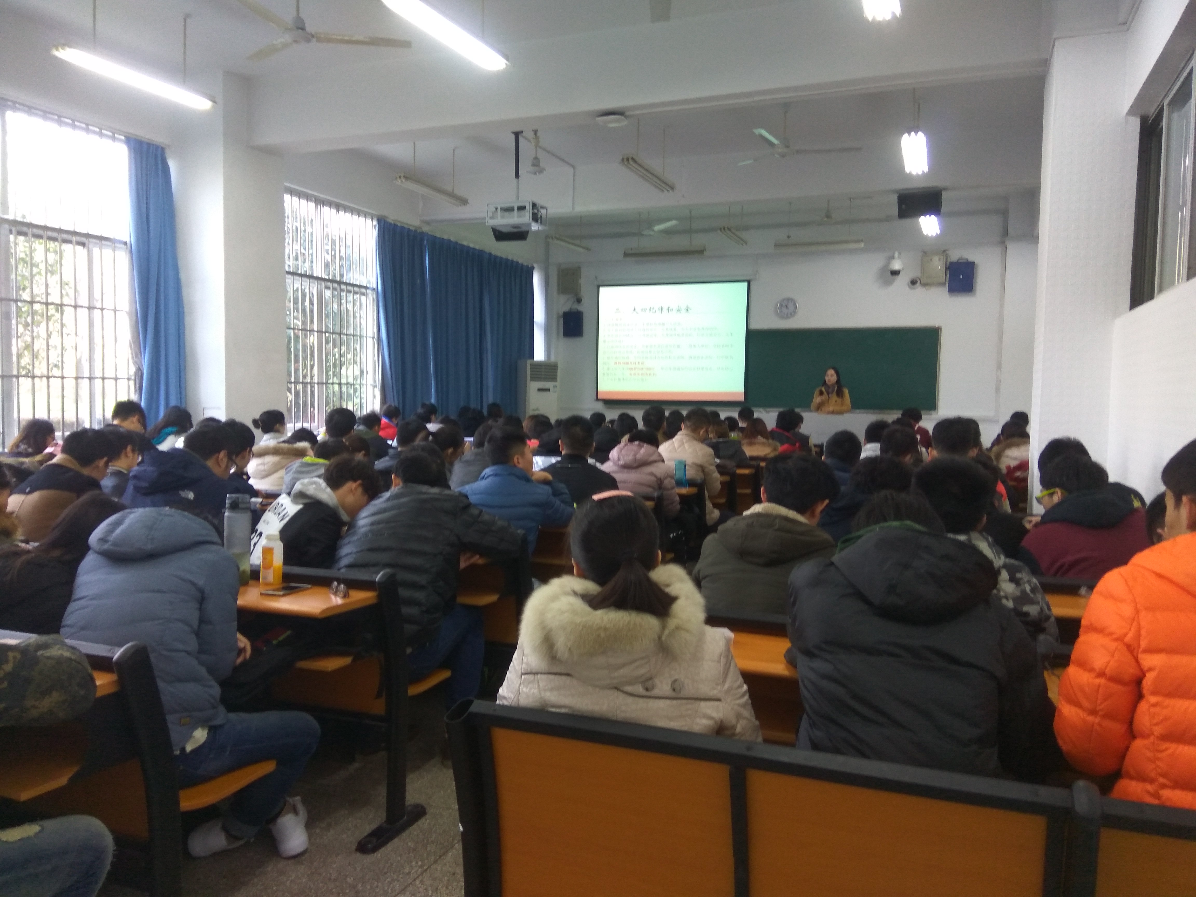 会议伊始,李艳丹向同学们安排了本学期形势政策课程的内容以及最终需要完成的任务。随后向毕业生介绍了就业形势以及三方协议的签订等内容,强调了户口及档案迁移等内容为同学们答疑解惑。同时她还着重强调大四年纪同学在毕业阶段的纪律和安全。要求大家遵守校规,严以自律。