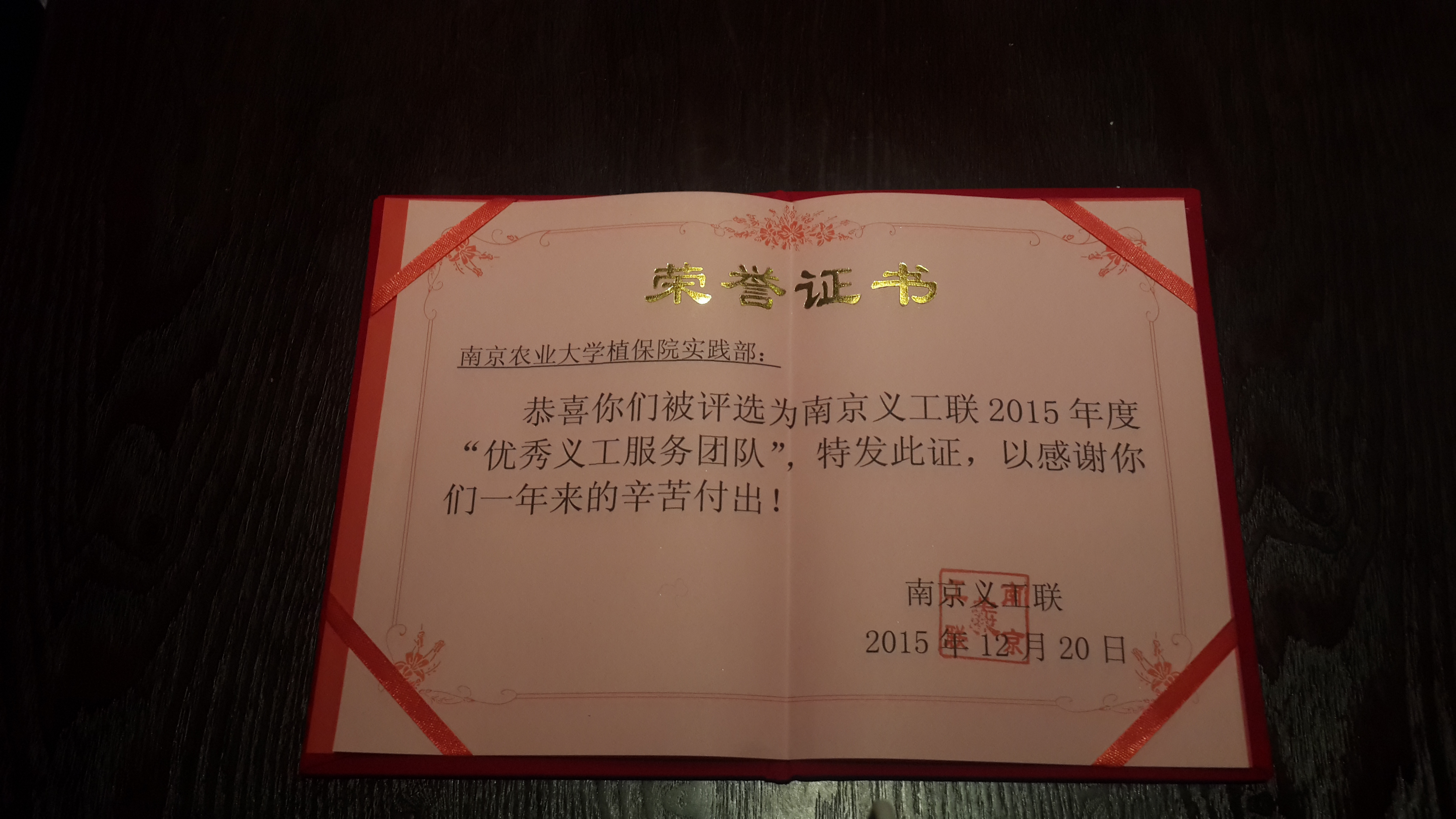 植保院实践部的努力得到了南京义工联的肯定,在以后的生活中,实践部将会把爱心传递给身边更多的人,将志愿精神发扬光大。