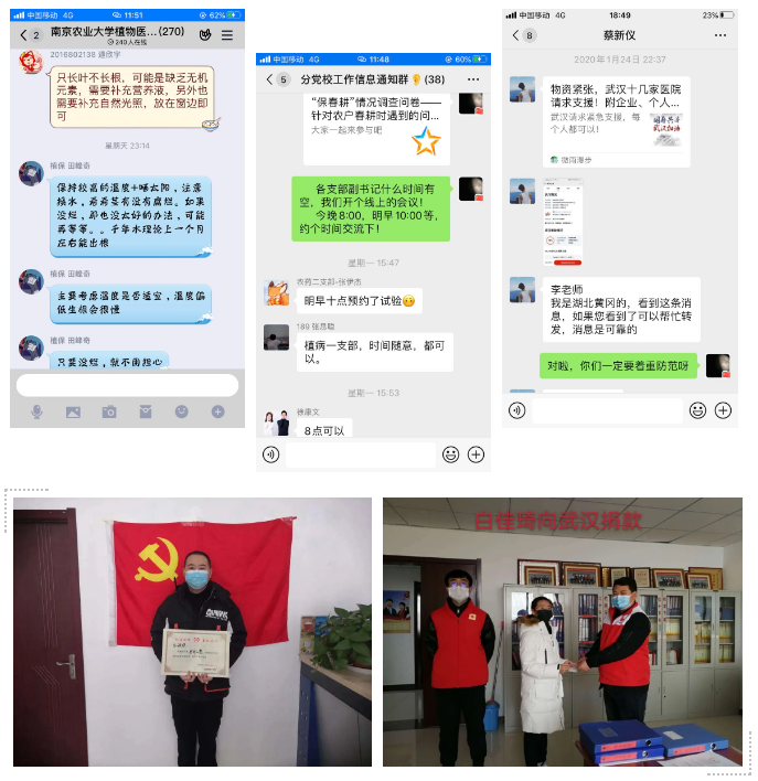 云端战“疫”:党支部研究生,投身“大学生植物医院”,为居民和农户开展线上问诊;号召广大研究生,“保春耕”情况调查问卷;湖北籍研究生蔡新仪,在疫情初期,积极号召亚洲色吧