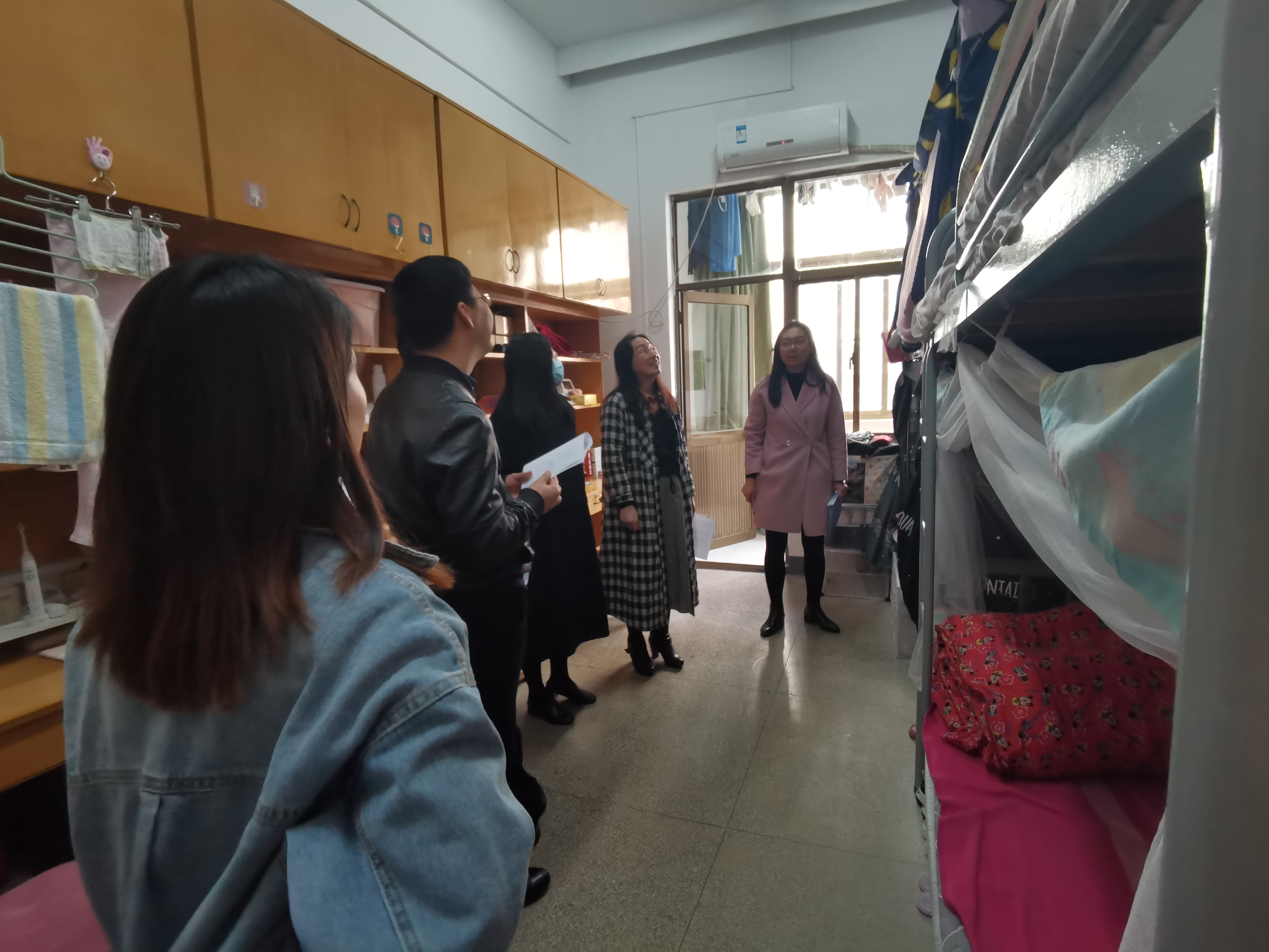 党委副书记吴智丹、研究生导师高聪芬和赵晶、研究生辅导员罗舜文、兼职辅导员马洪雨和叶敏以及研分会生活部的学生一同走访了研究生宿舍。