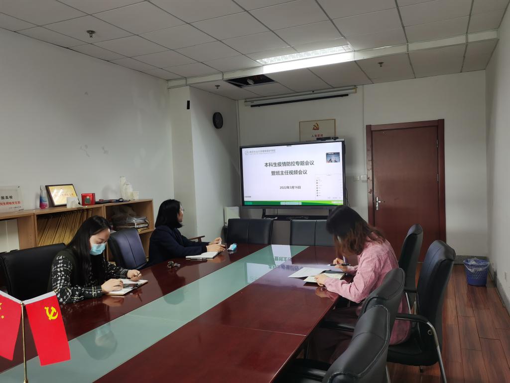 疫情防线。她同时指出,强化教育引导,提高学生防疫意识与责任意识,进一步细化落实宿舍网格员制度,加强对学生的关注、关心和关怀,守护学生的身心健康。辅导员李艳丹和汪越就疫情防控举措、学生纪律管理要求、核酸检测安排、就业指导服务、宿舍网格化管理、学生关怀与网络关注等具体工作作说明。