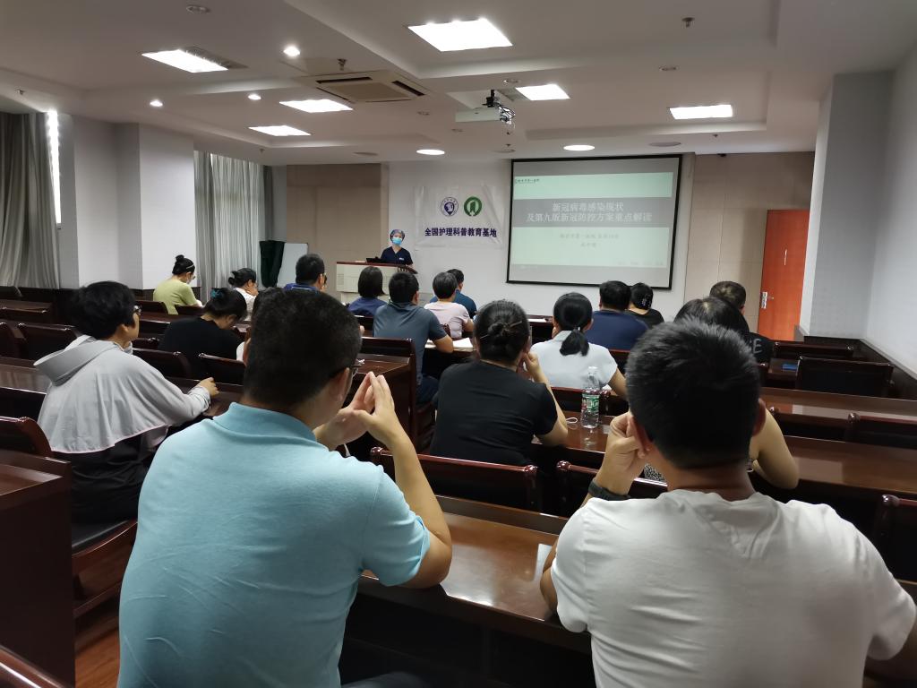 特邀了南京市第一医院发热门诊成中娟护士长进行授课讲解。她从新型冠状病毒的流行病特点、传染源控制等七方面对第九版新型冠状病毒肺炎防控方案进行了重点解读,对亚洲色吧