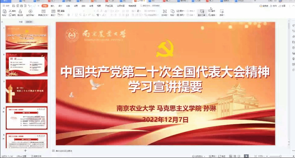 孙琳的宣讲紧紧围绕党的二十大的主题、主要成果、关于过去5年的工作和新时代10年的伟大变革等7个方面,紧密联系实际对党的二十大精神进行了集中阐释和系统讲解,综合运用案例阐释、数据剖析、国际比较等方式,生动阐释了党的二十大精神要义。孙琳指出,要认真学习领会党的二十大精神,紧密团结在以习近平同志为核心的党中央周围,高举中国特色社会主义伟大旗帜,全面贯彻习近平新时代中国特色社会主义思想,为全面建设社会主义现代化国家、全面推进中华民族伟大复兴作出新的更大贡献。