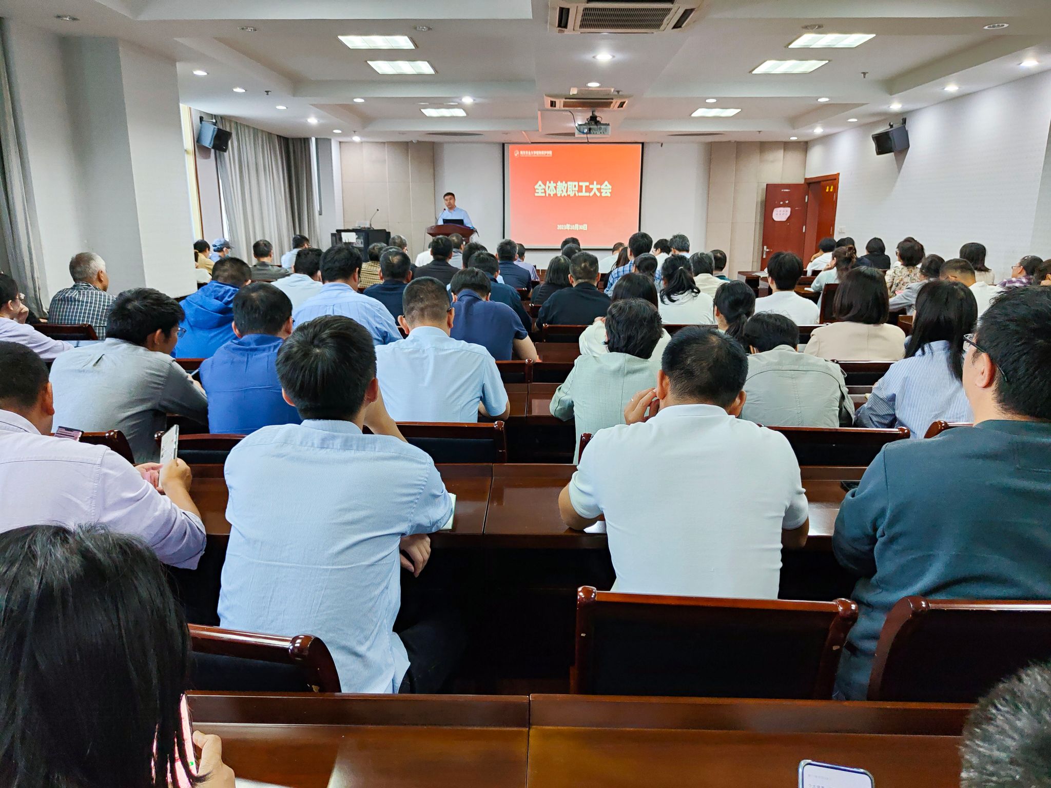 领导班子及全院教职工参加会议,会议由党委副书记(主持工作)许承保主持。