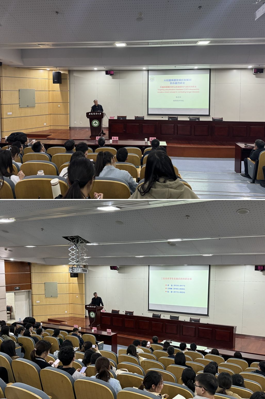 张正光院长、陶小荣教授分别受邀作学术报告,安农植保院教师、研究生及本科生代表聆听了报告,现场反响热烈。