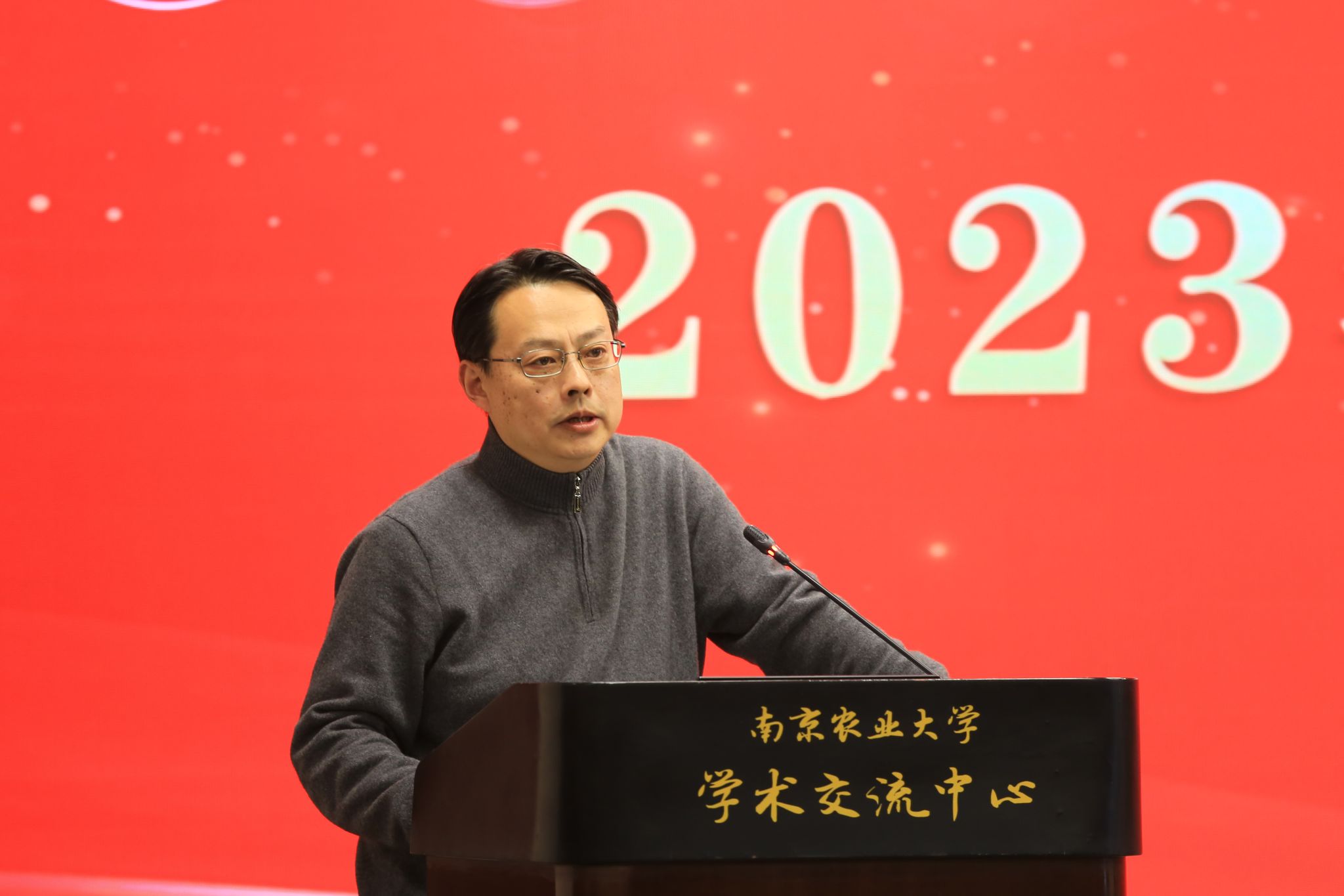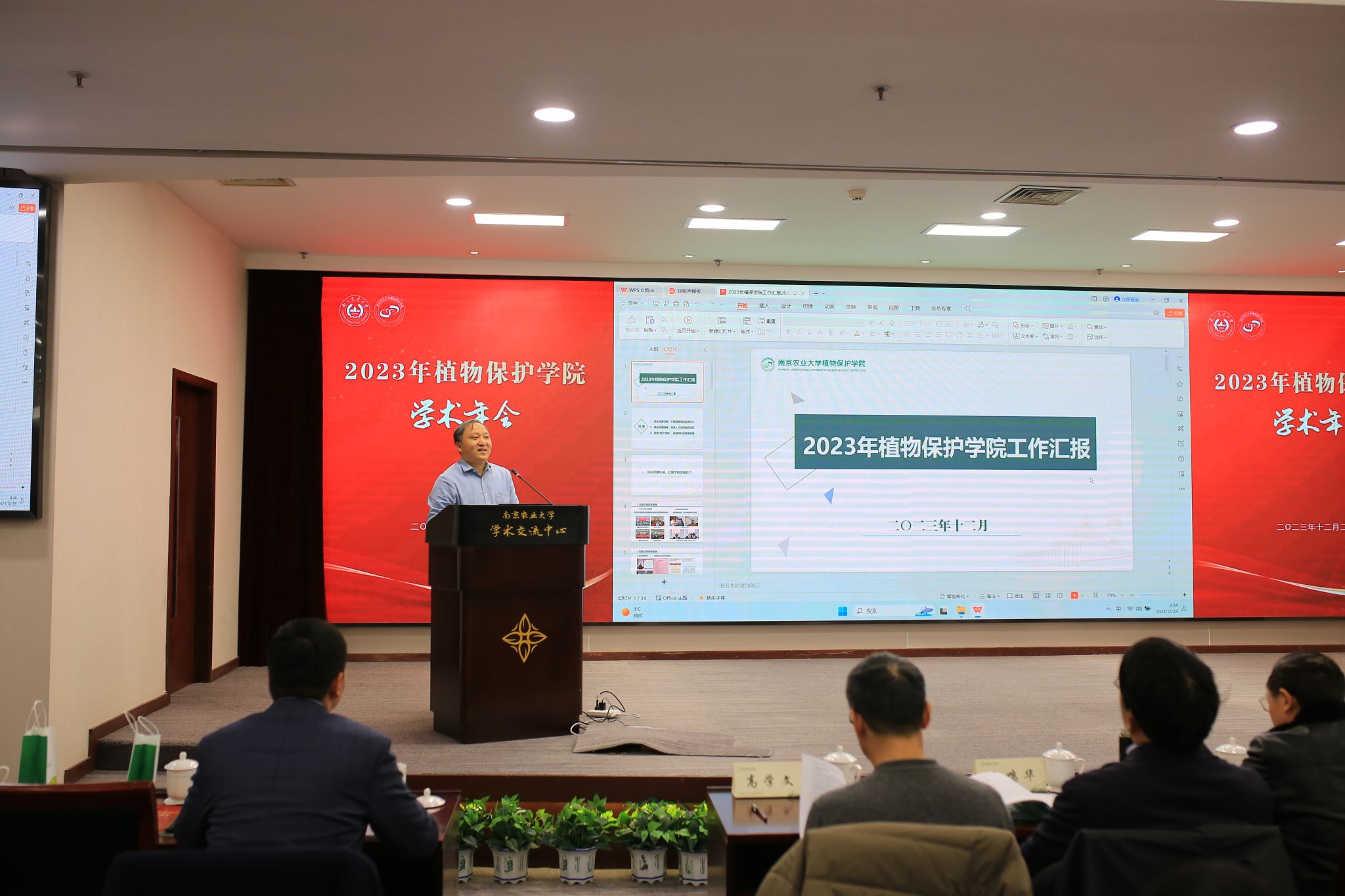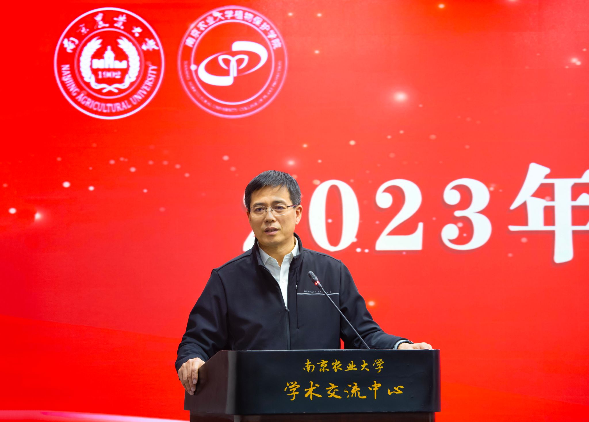 学术交流中心六楼报告厅举行。校党委常委、副校长王源超,退休教师代表沈晋良教授、杨莲芳教授、吴耀清教授、翟保平教授,杭州欢田喜地农业科技有限公司总经理李涛,南京博兰德生物科技有限公司总经理李赟、市场部经理杨永刚,格来赛生命科技(上海)有限公司市场部经理赵晓明等受邀参加年会。校计财与国有资产处副处长(主持工作)郑岚应邀作专题报告。植保院领导班子成员、全体教职工以及部分研究生参加会议。
