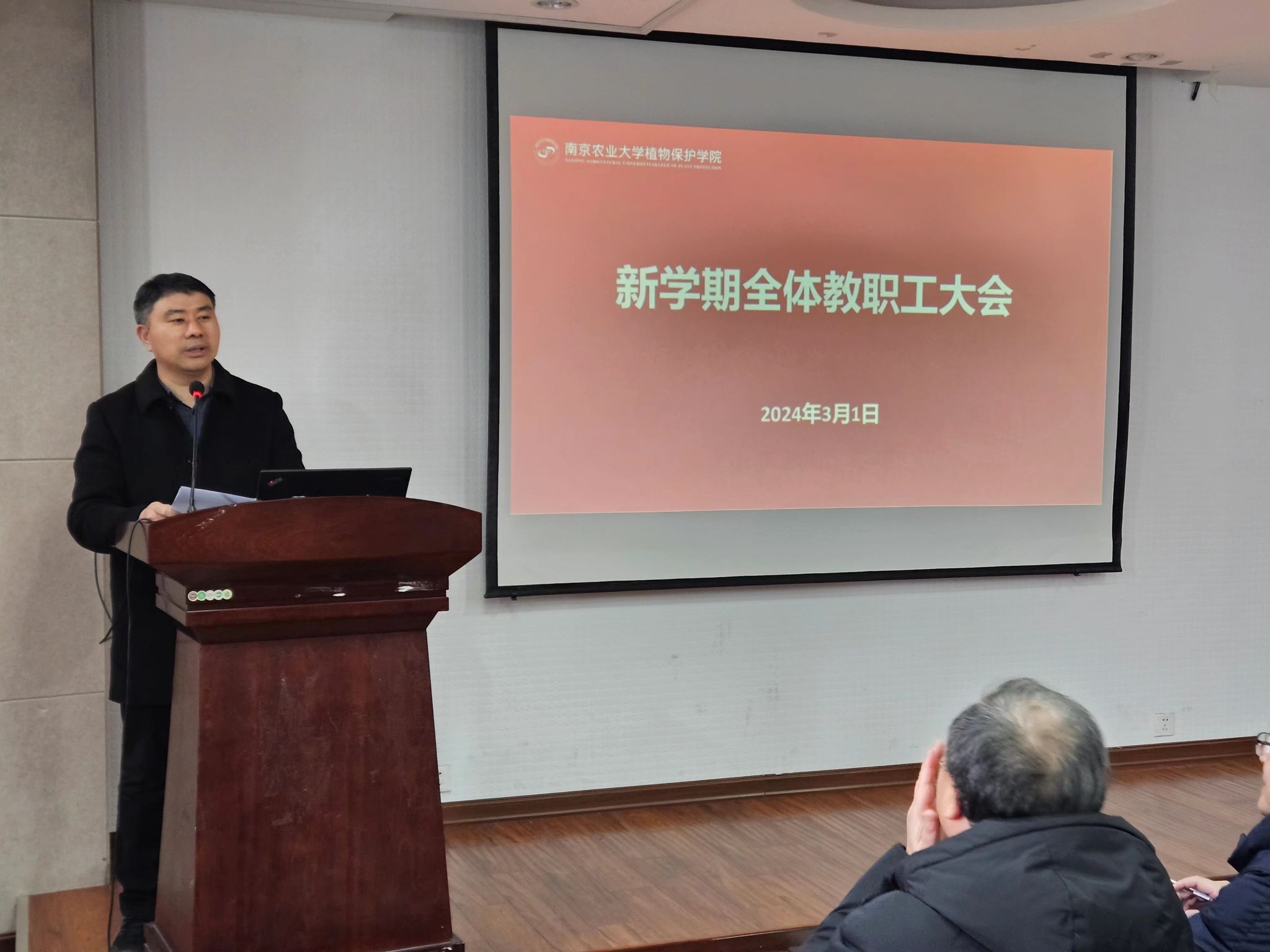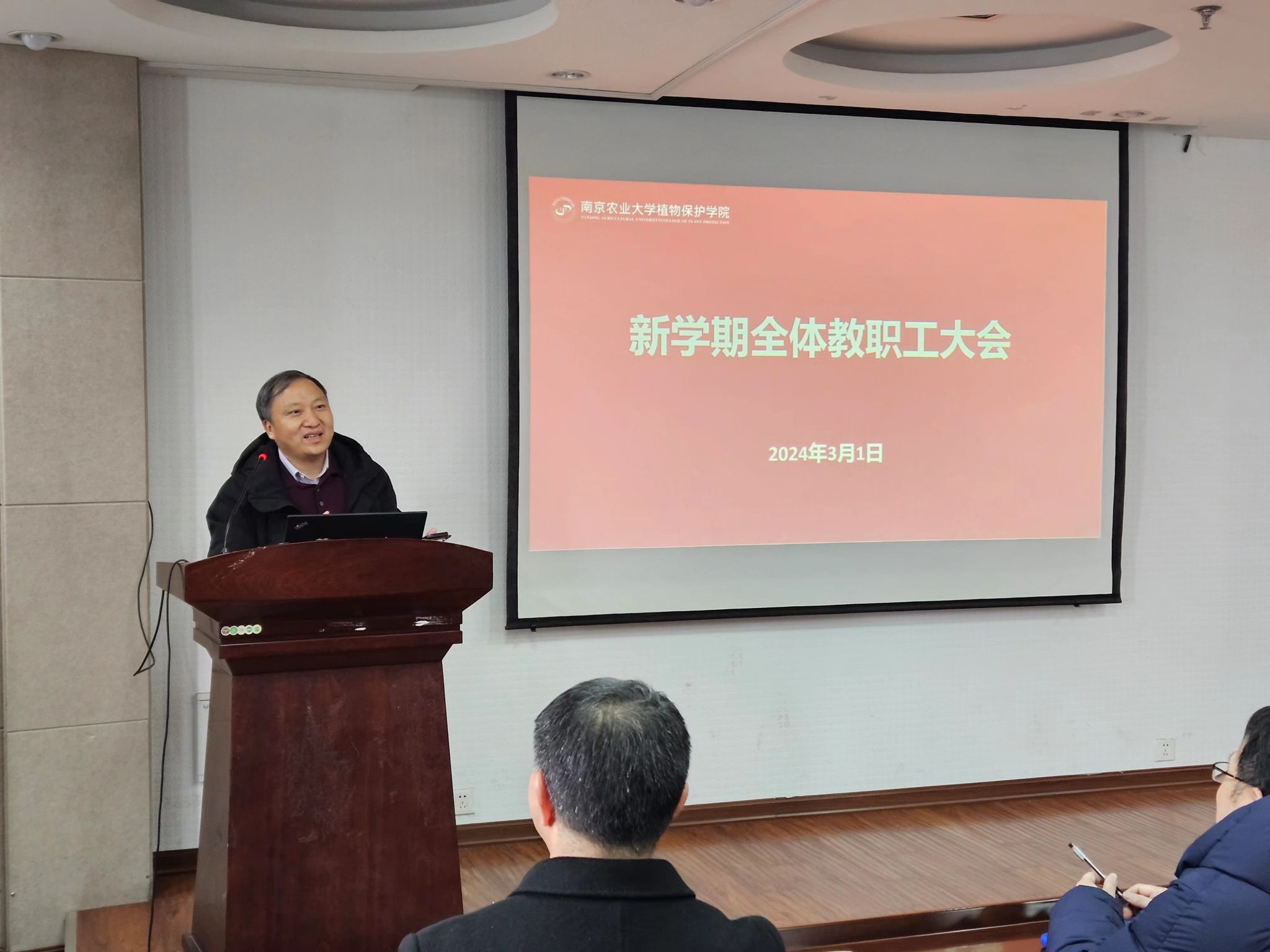 随后,张正光部署新学期工作。他从安全管理、教育教学、科学研究及学生工作等方面作了工作部署。在安全管理方面,要求各实验室与公共实验平台切实加强安全检查,严格规范管理,创造安全有序的教学、科研环境;在教育教学方面,他要求全体教师要以迎接本科教育教学审核评估为契机,全面自检自查教学工作漏洞,抓牢抓实课堂教学质量,严格落实学生过程管理,推进学科高质量建设;在科研工作方面,他强调各个团队要迎难而上,推动科研重点攻关,落实目标管理相关责任,促进重点研发计划申报,同时积极引进海内外高素质人才,合理搭建人才梯队;在学生工作方面,他希望全体教师要关爱学生,注重学生心理健康工作,鼓励学生积极参加“互联网+”等全国赛事,做好本研学生就业指导与服务工作。
