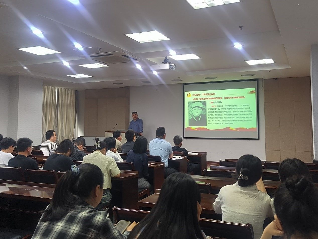 党委副书记(主持工作)许承保,为全体党员上了一堂党纪学习教育专题党课——《党史上的纪律教育》。报告由植病系教师党支部书记伍辉军主持。