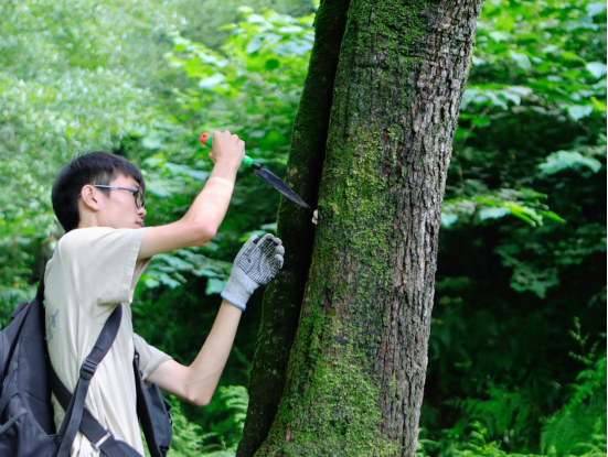 这片广阔的“露天课堂”里,日均徒步12公里、汗水浸透衣衫,蚊虫叮咬等成了成员们的常态。密林深处、溪流之畔,团队成员一手捕虫网,一手采集瓶,腰间挂满工具和三角纸袋,在不同海拔和植被带“地毯式”搜寻目标物种。面对采集到的形态各异的蝴蝶,辨别种类成了一大难题。“啃”专业图鉴、请教昆虫系老师、日均2小时鉴定学习成了成员们的日常。依照“不过度采集、不破坏生境”的原则,数十天的调研里,成员们科学采集、规范处理了涉及凤蝶、粉蝶、蛱蝶科的45种、总计127只蝴蝶标本,同步梳理记录39种关键寄主植物,拍摄上千张生态与标本照片,为后续工作打下了坚实基础。