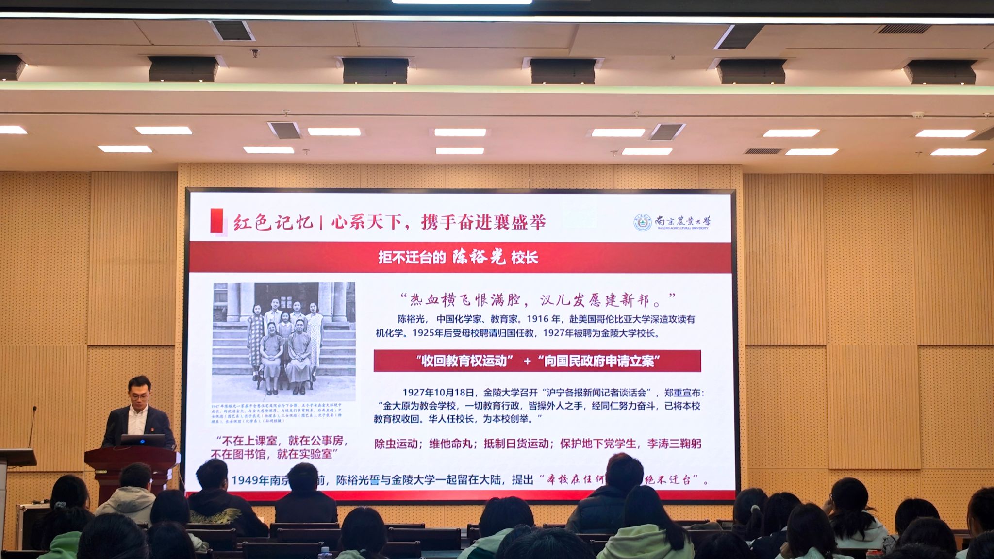 波澜壮阔的发展历程,通过讲述拒不迁台的陈裕光校长、远牧昆仑的盛彤笙院士、三次科考罗布泊的彭加木先生等先辈的感人事迹,深刻诠释了“诚朴勤仁”的南农精神。此外,他还列举了以钱崇澍、秉志等为代表的一批学术大师,他们作为我国植物学、动物学等领域的奠基人与开拓者,创造了卓越的学术成就。陈志亮勉励全体学员,要以这些前辈为榜样,从红色校史中汲取力量,努力成长为知农爱农的新型卓越人才。