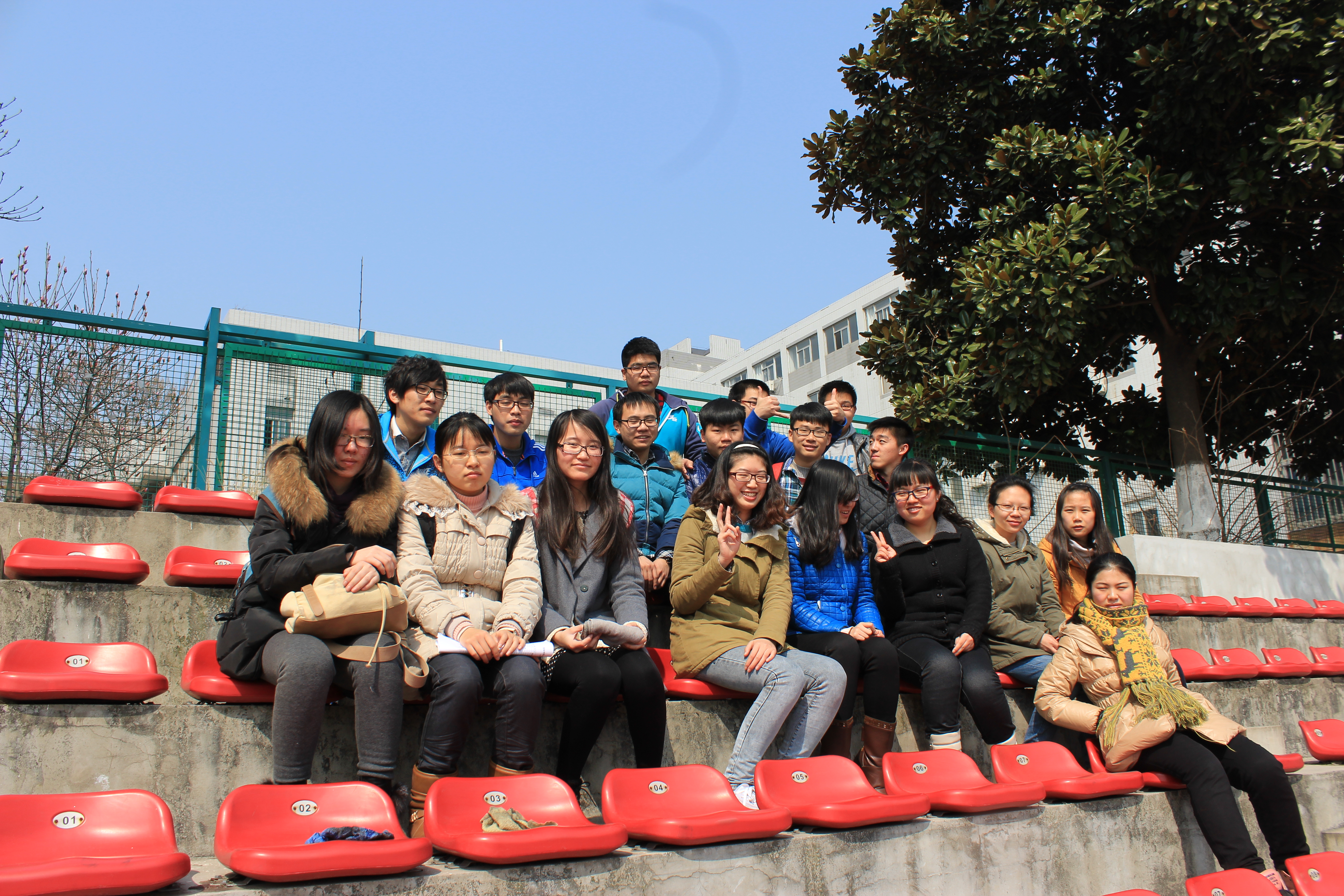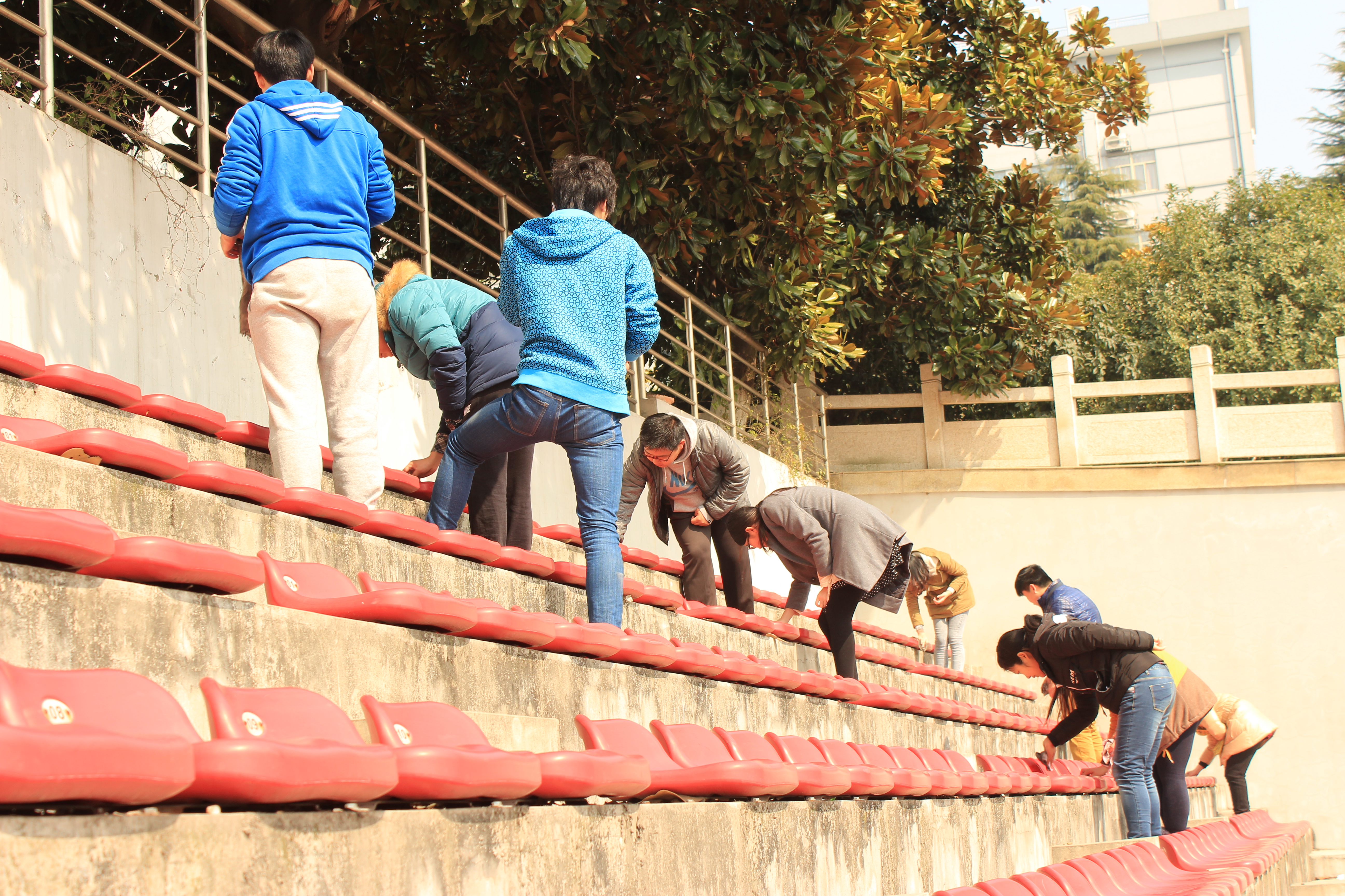 号召,在班长的带领下共同来到操场进行了雷锋月的班级活动——清理看台座椅。