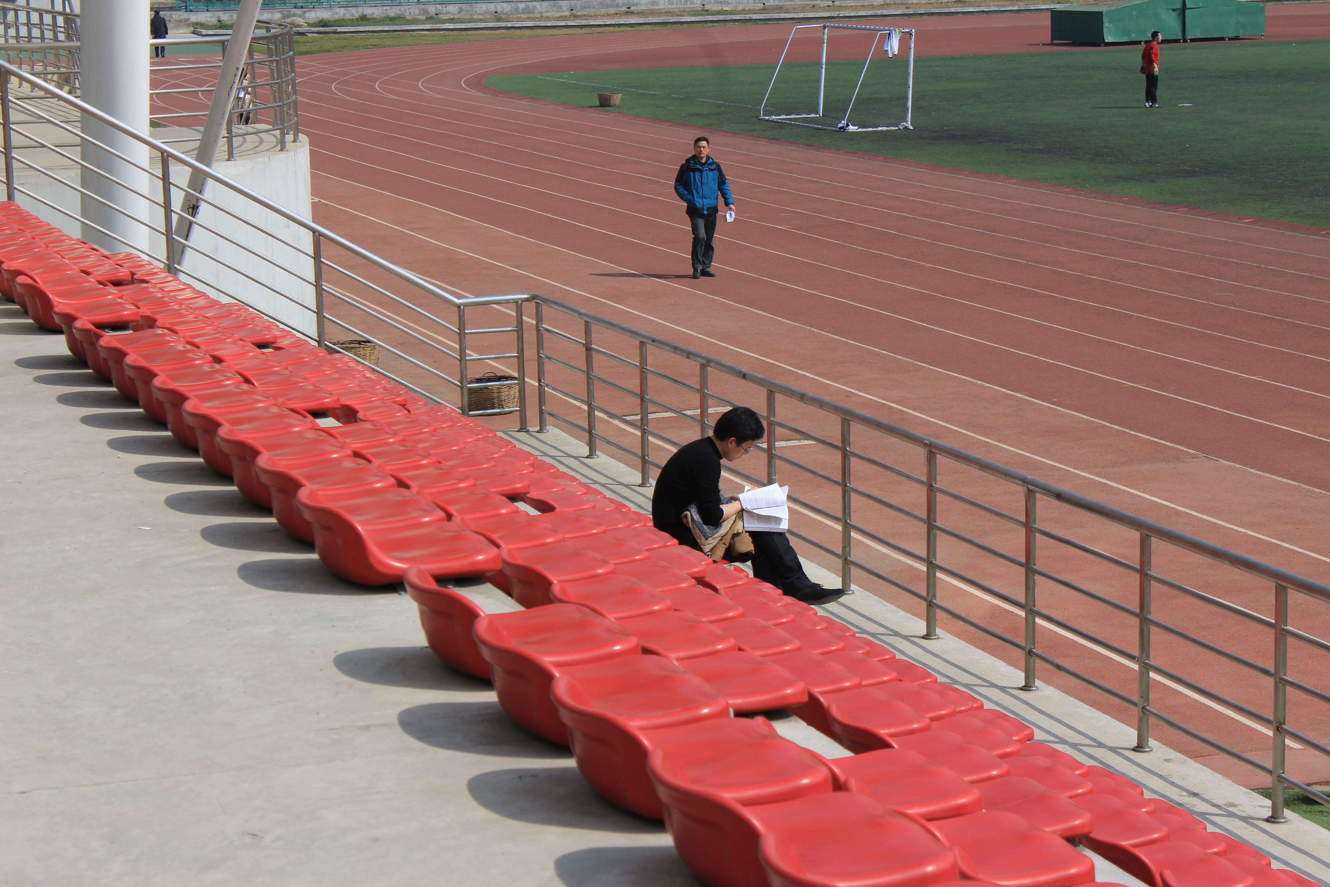 经历两节紧张的课程之后,同学们回到宿舍拿了清理工具共同奔向操场,经过班长的明确分工,在主席台两旁的看台开始了繁忙但是愉快的工作。投入战斗的同学们认真清理着满是灰尘的座椅,旁边负责打水清理的同学们穿梭往来,为大家做好后勤工作。天气晴朗,但初春的空气中还有微微的寒意,然而同学们互帮互助,热火朝天的义务劳动使大家心中充满温暖。经过近一个小时的工作,看台的所有座椅都被同学们清理完毕。不久,便有人在看台的座椅上开始读书,同学们的劳动成果得到肯定,大家心情都十分愉悦。班级同学进行合影留念之后,本次活动顺利结束。