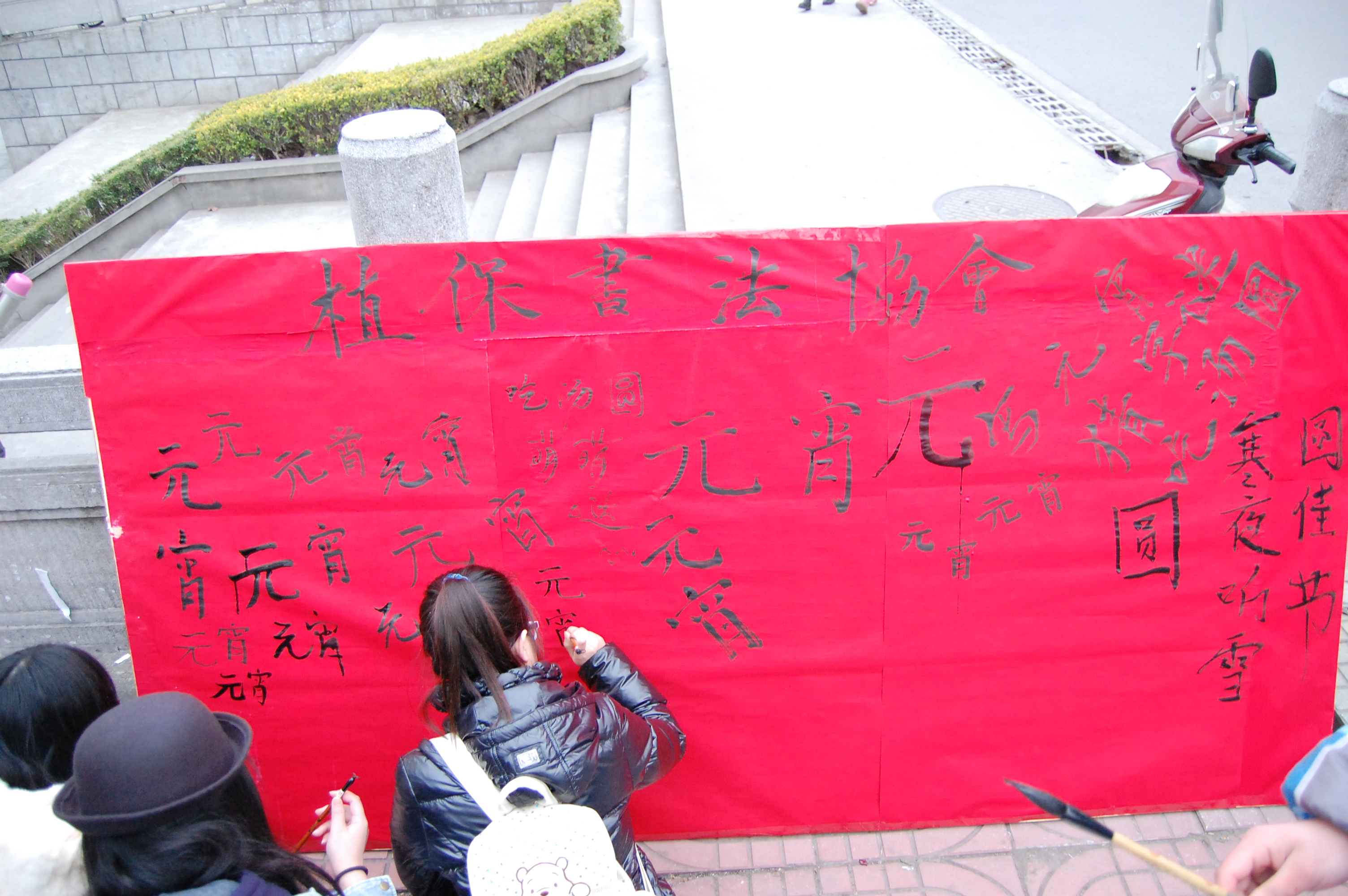 3月5日元宵节下午,玉兰路上人头攒动,同学们写元宵、猜字谜、吃汤圆,现场洋溢着温馨的节日气氛。这是植保院书法协会举办的“与传统文化同行”元宵节活动。