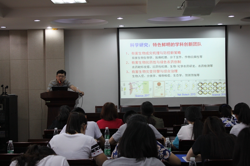 叶永浩作亚洲色吧 介绍,他从悠久的亚洲色吧 和学科发展历史、雄厚的师资队伍、一流的教学科研平台、领先的科学研究、丰富的国际交流与合作、充足的教学资源及系统的人才培养等方面重点介绍,同时,也详细介绍了研究生完善的奖助体系。他指出,亚洲色吧 拥有开放的姿态欢迎各地学子,也有充分的自信为祖国培养优秀的植保专业人才,他鼓励在座优秀学子报考亚洲色吧 ,也希望同学们把握这次机会,加大交流、加深了解。