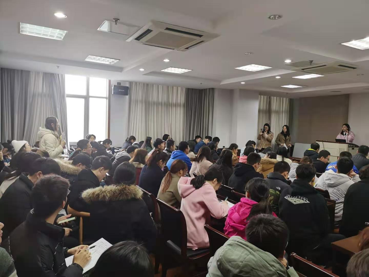 的公派留学项目类型”、“如何高效阅读文献”以及“读博和工作如何选择”等问题与三位优秀的师兄师姐进行了交流,现场气氛轻松活跃。