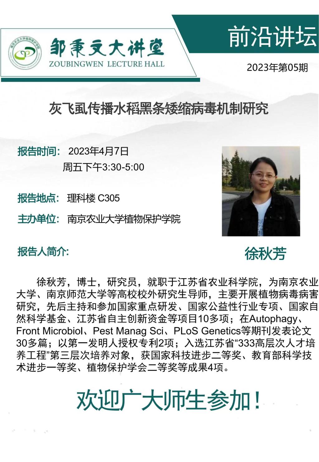 邹秉文大讲堂之前沿讲堂—灰飞虱传播水稻黑条矮缩病毒机制研究