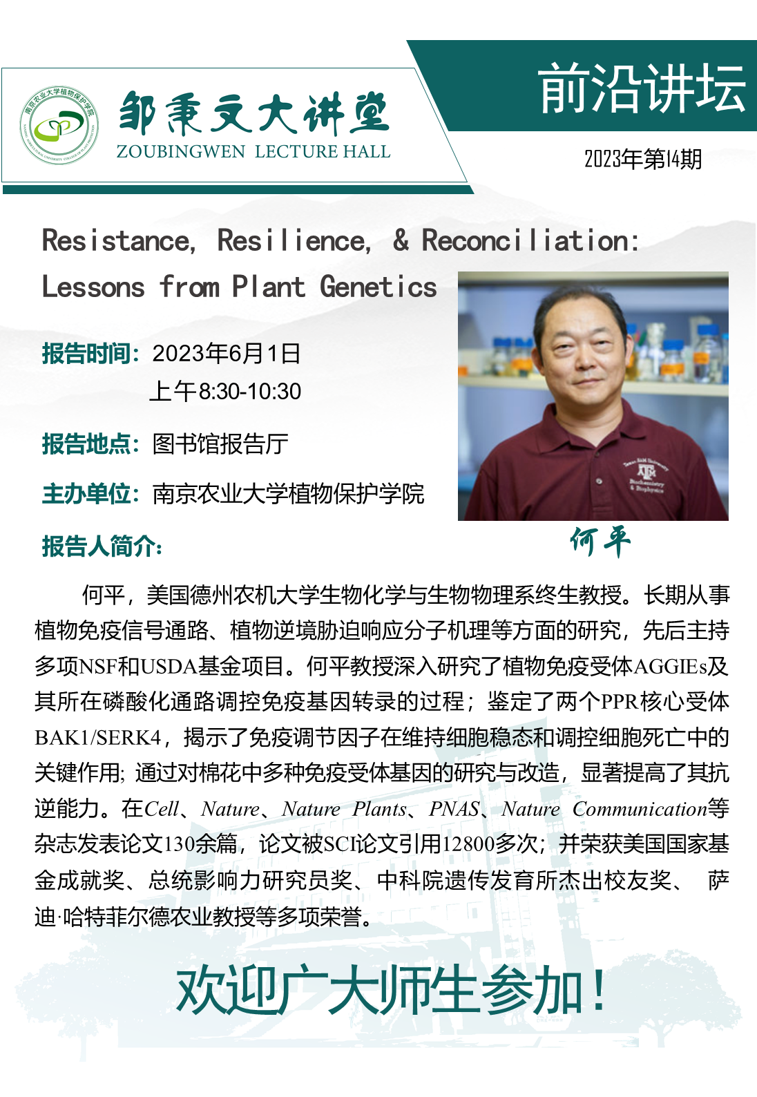 邹秉文大讲堂之前沿讲堂—Resistance, Resilience, & Reconciliation: Lessons from Plant Genetics