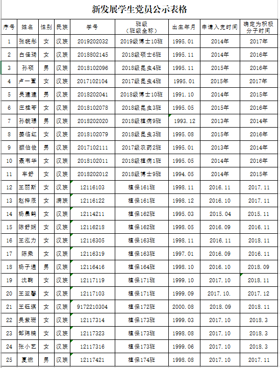经各党支部推荐,亚洲色吧 党委讨论,同意以下同志发展为预备党员:
