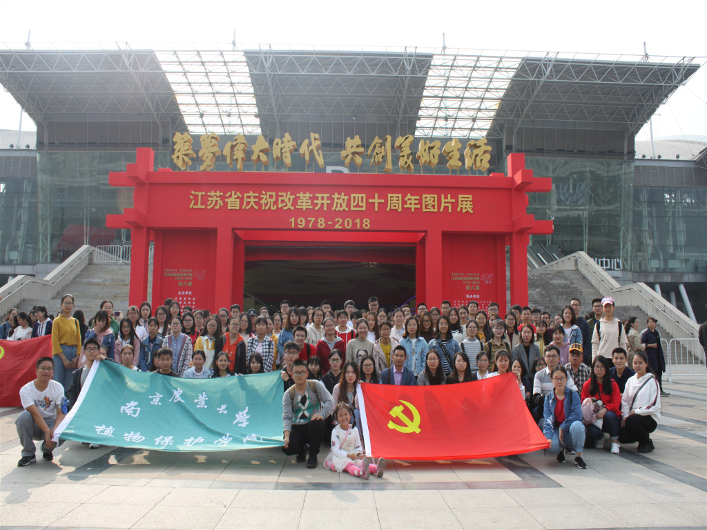 10月24日下午13:30,植保院部分师生党员和全体初级党建班同学在植保院党委副书记黄绍华的带领下,前往南京国际展览中心参观江苏省改革开放40周年图片展。