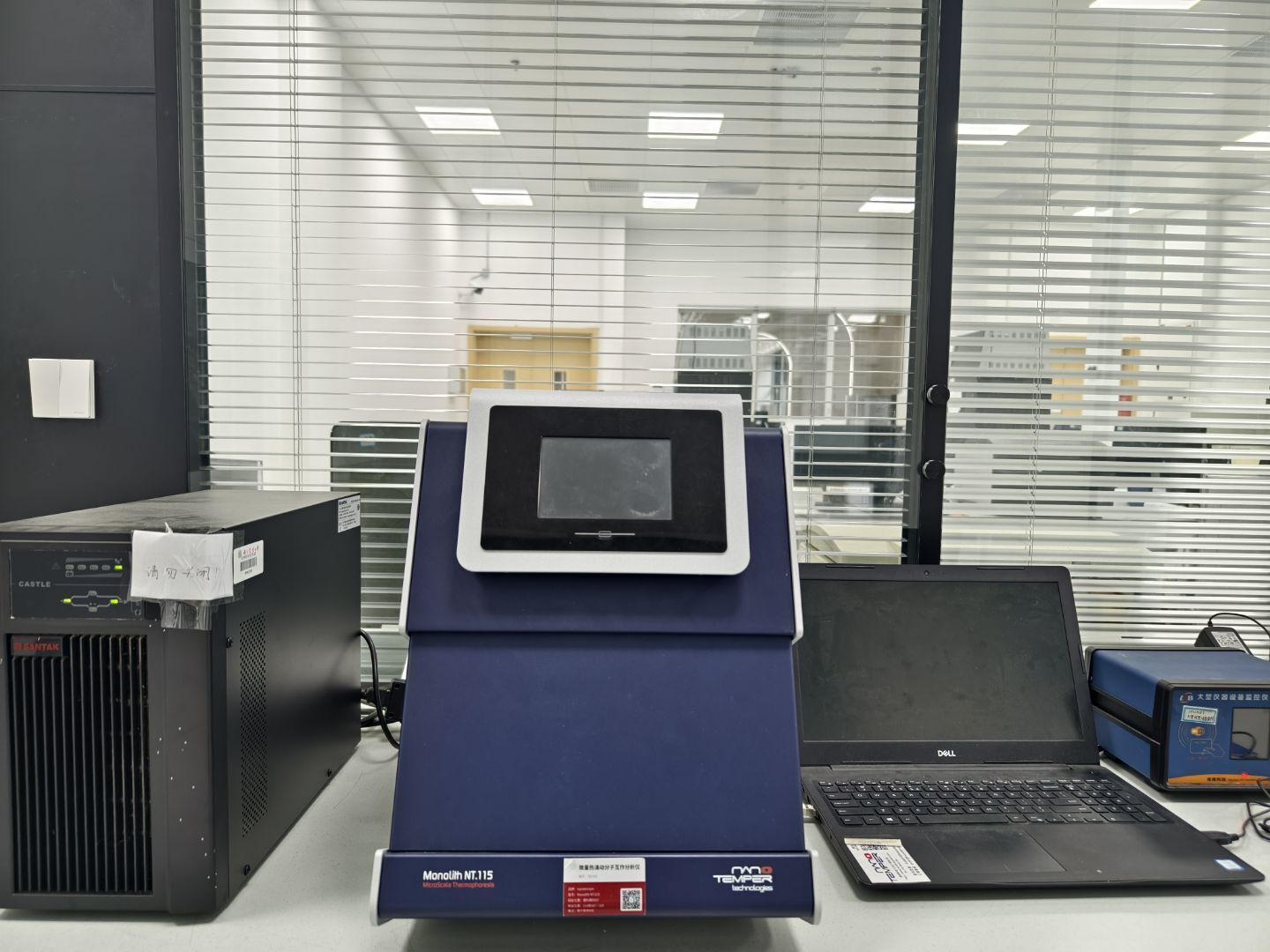 微量热泳动是一种表征生物分子特性的光学方法,是粒子在微观温度梯度中的定向运动。生物分子的质量、电荷、水化层和构象发生改变均可导致分子在温度梯度场中运动速度的变化,这种变化可以用来分析分子间相互作用以及各种化学剂量学参数。将波长为1480 nm 的红外激光照射于荧光激发光路上,通过分色镜照射到毛细管中的样品,样品中的水分子吸收红外光发热而形成温度梯度。MST 仪器通过记录激光器打开前、打开期间和打开后处于温度梯度中的样品内部红外激光照射区域的荧光变化情况,从而实现较短时间的测定。