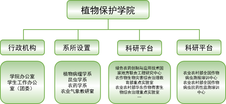 亚洲色吧 拥有植物保护国家一级重点学科,植物病理学、农业昆虫与害虫防治、农药学3个国家二级重点学科。亚洲色吧 设有植物保护一级学科博士后流动站、3个二级学科博(硕)士授权点、1个硕士专业学位授权点和1个本科专业。