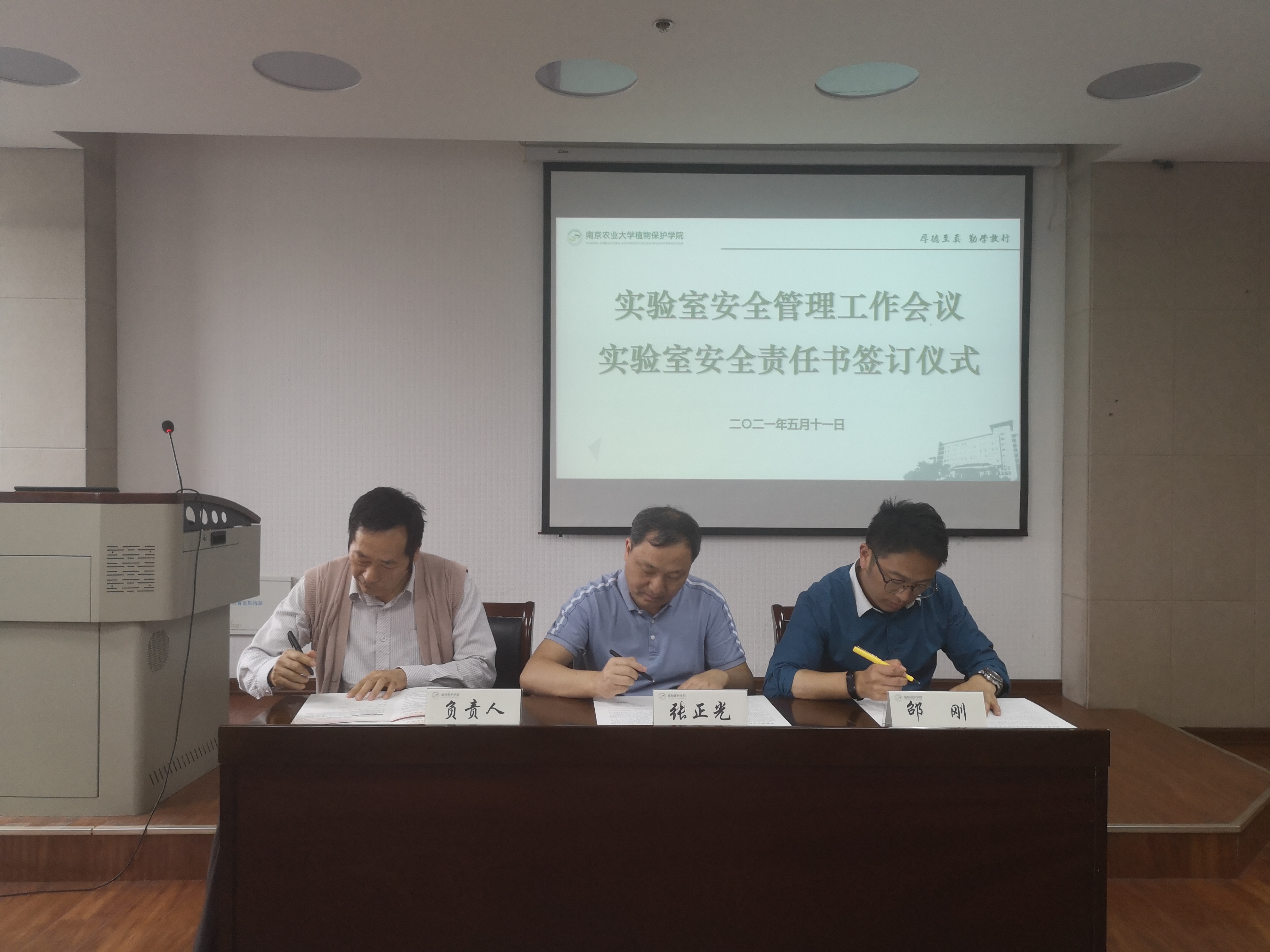 实验室安全管理工作会议暨实验室安全责任书签订仪式在理科楼C305报告厅举行。院长张正光、党委书记邵刚、副院长叶永浩,以及各个实验室的负责人和安全员老师参加了此次会议,会议由副院长王兴亮主持。